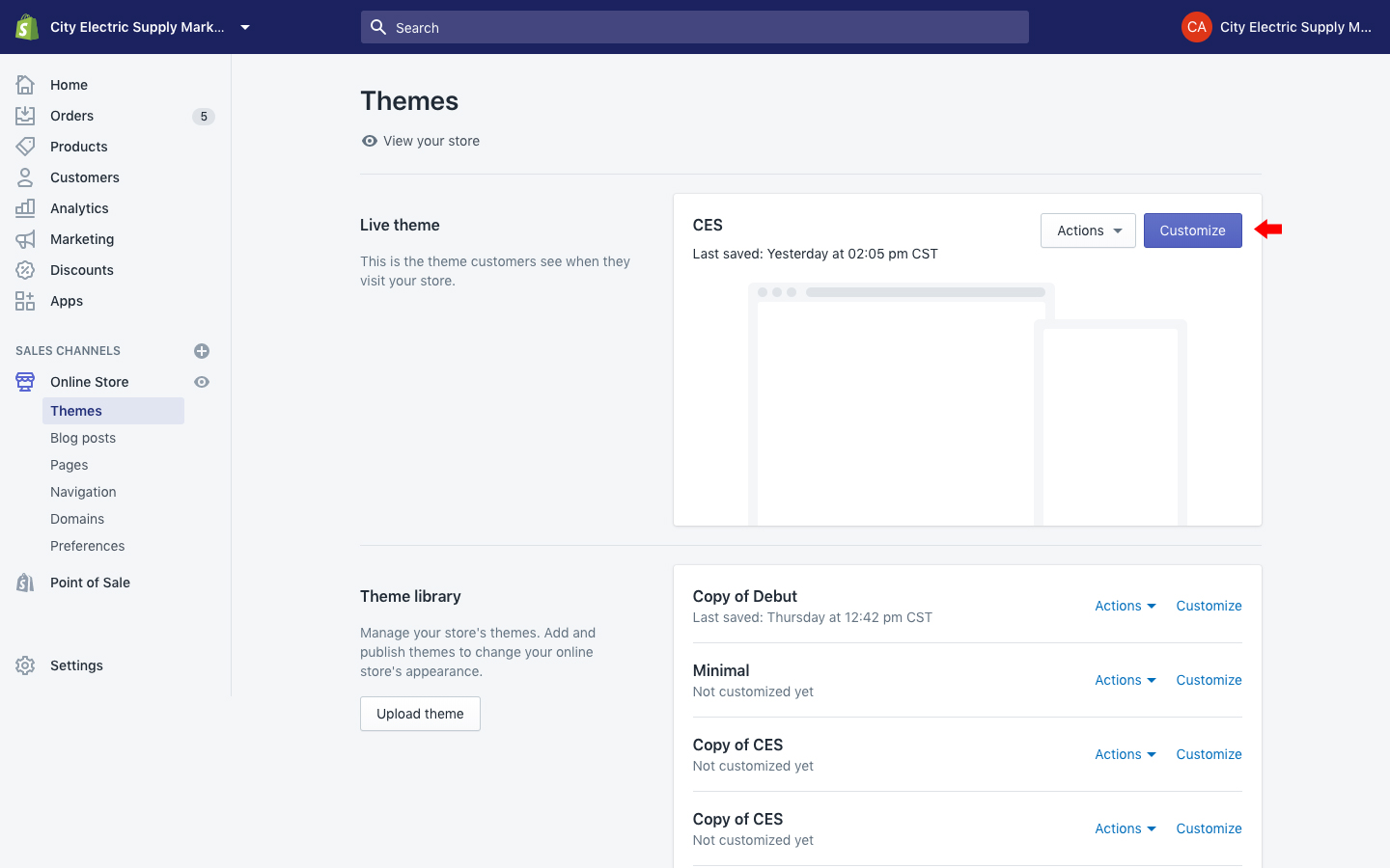 Initial steps to get to the customize section